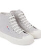 Version moderne du modèle classique Superga, ces baskets montantes présentent une tige en coton renforcée d’un embout en caoutchouc pour une touche à la fois tendance et pratique. Leur conception unique leur confère un style à la fois fonctionnel et élégant, en faisant un accessoire décontracté et tendance au quotidien. Elles sont confectionnées avec une tige en toile de coton, une semelle de 3 cm, une étiquette logo jacquard bicolore sur le côté, une semelle intérieure et un contrefort de talon griffés, des œillets en aluminium gravés du logo, des lacets en coton et une semelle extérieure en caoutchouc naturel vulcanisé. Le processus de fabrication et les matériaux de ce produit sont 100 % vegan et non testés sur les animaux.