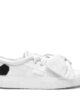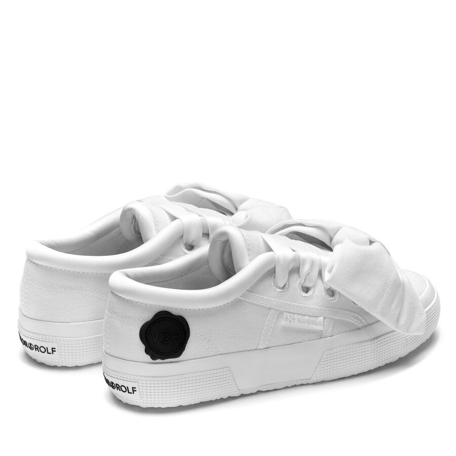 Après leur première collection capsule célébrant le 30e anniversaire de la maison de haute couture, Superga et Viktor&Rolf se sont associés pour concevoir une seconde édition limitée. La collection Printemps/Été 2024 allie le caractère intemporel de Superga® à l’esthétique avant-gardiste de Viktor&Rolf et reprend certains codes de la marque : la fleur couture, le nœud iconique et le sceau en silicone Viktor&Rolf apposé sur l’extérieur de la chaussure. Chaque semelle est également ornée d’un patch arrière en caoutchouc portant le logo Viktor&Rolf. L’emblématique 2750 se décline en deux versions. La première présente une tige en toile de coton avec des bordures en satin rembourrées, des œillets brodés et des lacets en satin. Son élément signature ? Un maxi nœud amovible en coton, confectionné à la main.